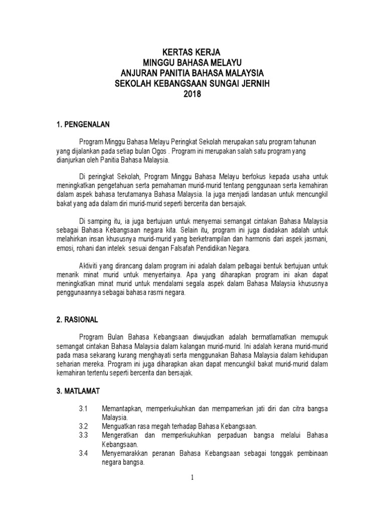 Kertas Kerja Minggu Bahasa Melayu 2018 Pdf