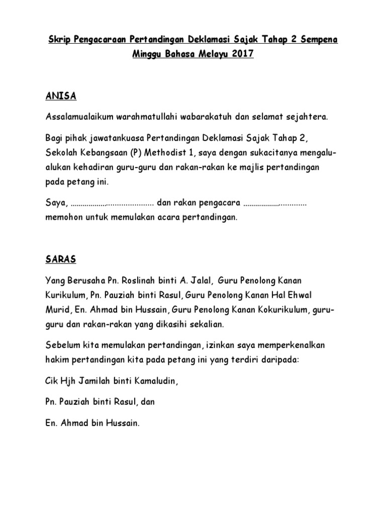 Teks Pengacaraan Penuh Minggu Bahasa 2018 Pdf